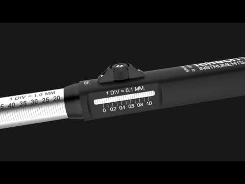 When the Combi Gauge is screwed in to a thread hole, the scale divided telescope sleeve is pushed up in the handle. The thread depth can then be read directly on the sleeve.